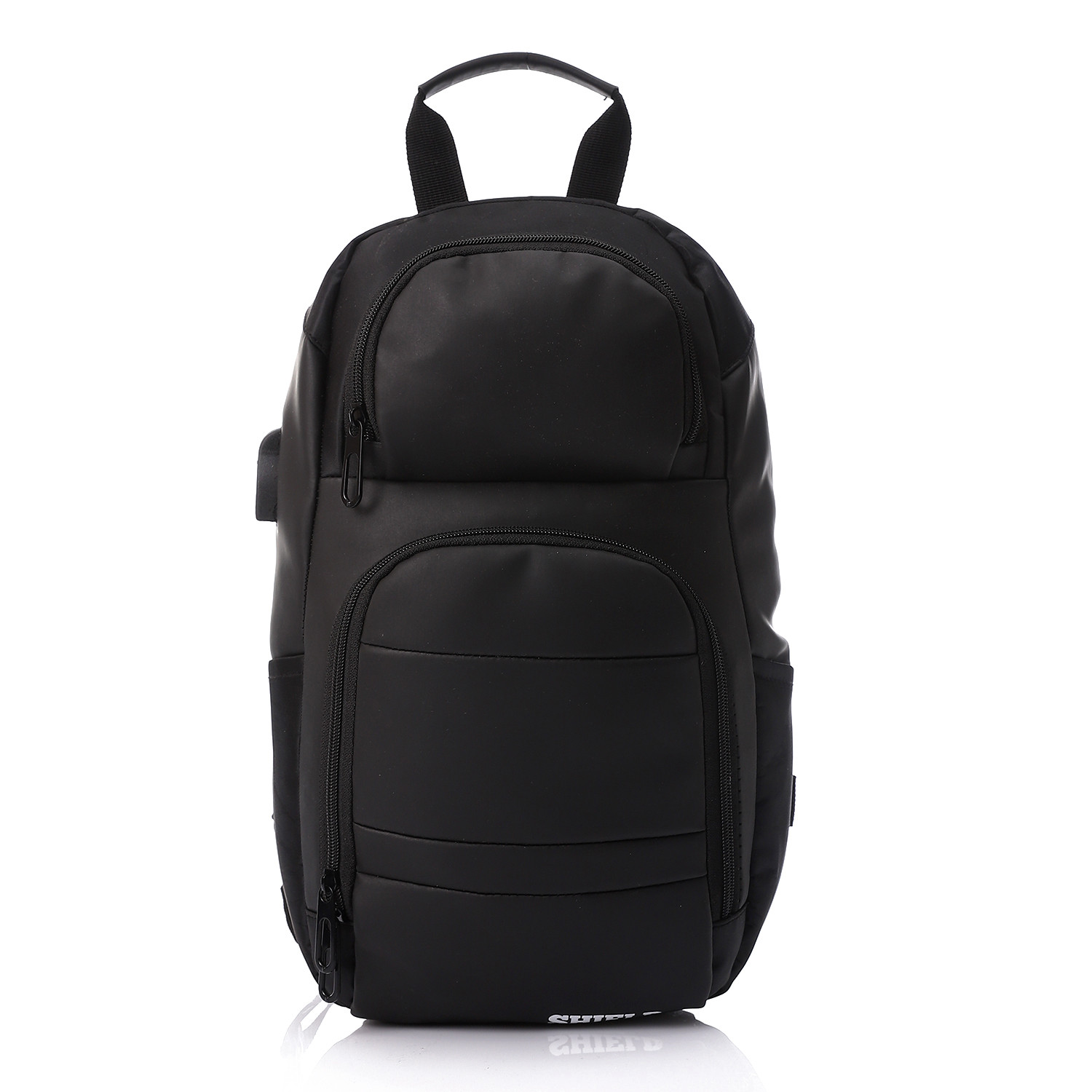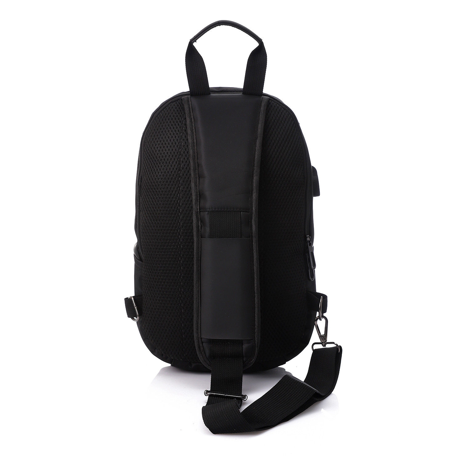 Adjustable strap can be worn crossbody, over the shoulder, or as a backpack